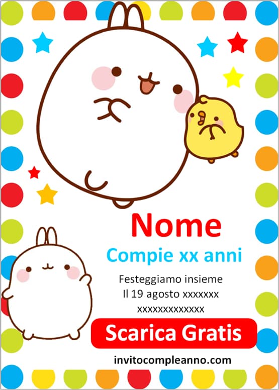 [+6] Inviti di compleanno MOLANG gratis da personalizzare – Crea il tuo invito online, stampalo o condividilo su WhatsApp e Facebook